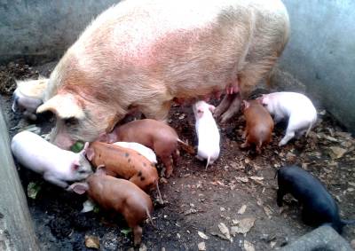 30余年来,他年年坚持饲养一头母猪,两年产仔五窝,每窝产仔10—13头不等,去年光卖小猪收入增收5000元以上。这次产下棕色的小猪还是首次。“我要留一头棕色的猪,自家好好饲养,看下喂大点后是什么样子的。。。。。。“他高兴的告诉我。