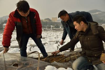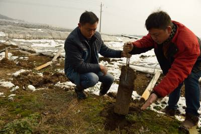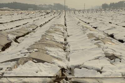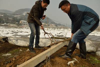 宜都降暴雪损失严重 2月1日,宜都市枝城镇五峰山村生态农业专业合作社的葡萄园里,工作人员正查看受灾情况。该合作社共倒塌葡萄架40亩,损失约200万元。1月31日凌晨,宜都市普降暴雪,致部分农业大棚倒塌及部分道路受阻,目前,当地政府正组织抗灾自救,确保群众生财产安全。