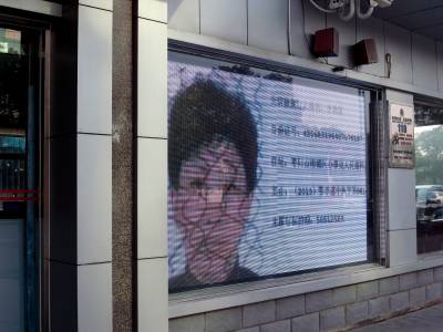 2016年2月1日,孝感市中级人民法院大门外的电子屏幕上,滚动播出失信被执行人名单。《最高人民法院关于公布失信被执行人名单信息的若干规定》(2013年7月1日) 第一条规定:被执行人具有履行能力而不履行生效法律文书确定的义务,人民法院应当将其纳入失信被执行人名单,依法对其进行信用惩戒(包括实行财产报告制度、限制高消费等)。第五条规定: 各级人民法院应当将失信被执行人名单信息录入最高人民法院失信被执行人名单库,并通过该名单库统一向社会公布。人民法院依法公布失信者名单(通俗叫法是“失信者黑名单”或者“老赖”),会对失信被执行人产生一定的震慑作用,以此推动整个社会的诚信建设向前发展。(祝大桥 摄)