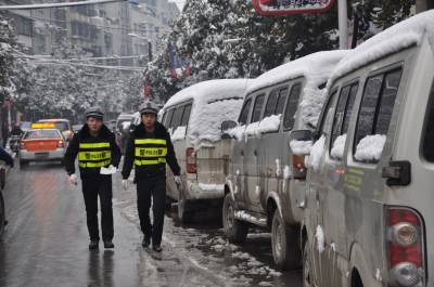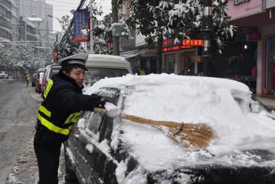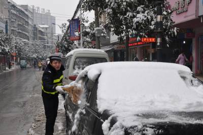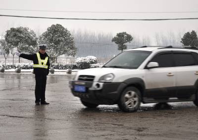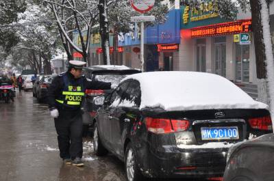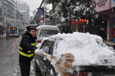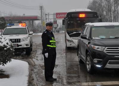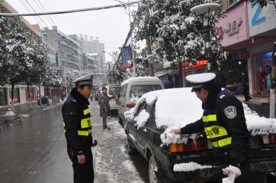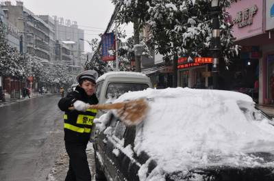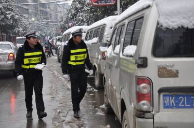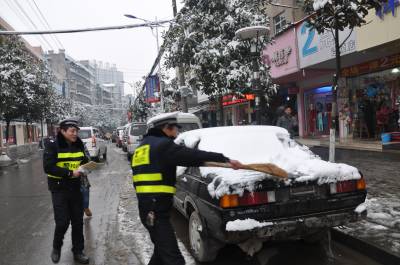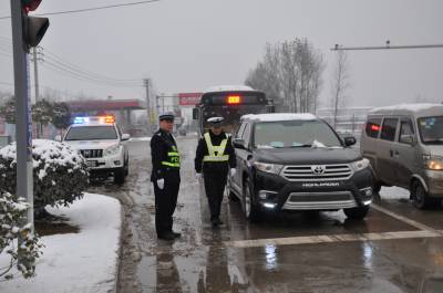 1月31日星期天,突降大雪,汉川市公安局交警大队的交警到交通主干道除雪化冰,排堵保畅,指挥交通。 签约摄影师 邹开建 赵大平摄 通联:汉川市公安局 电话:13197382491