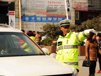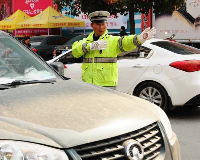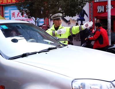 2月3日,十堰市郧阳区公安局交警大队干警正在城区各条街道上指挥车流通行。春节临执在外务工人员开自家车大量返乡,城区车辆巨増,为减较通行压力,郧阳交警大队封闭部分单行路,禁止部分路段左转,全员上阵保障交通平安通畅。 视界网周家山 王贤军摄