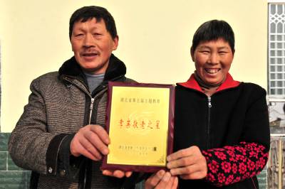 在照料岳父岳母瘫床和残疾的6年时间里,熊发山尽心尽孝,对两位老人的生活、身体、起居、休息、给予无微不至的关怀和照顾。妻子刘德献从心底里感谢熊发山,他们结婚二十多年,从未争过嘴,他是个好女婿,是家里的顶梁柱。熊发山一家人演绎着中华民族孝老爱亲的感人故事,用质朴与真诚谱写了一曲爱的赞歌,湖北省老龄工作委员会也授予了他们“孝亲敬老之星”荣誉。视界网 张国荣 摄