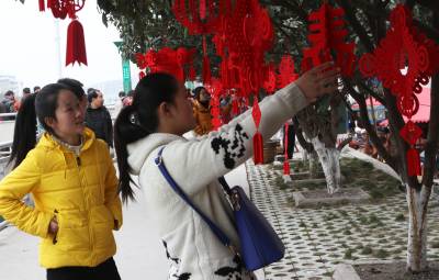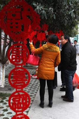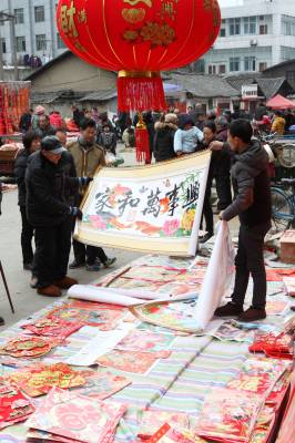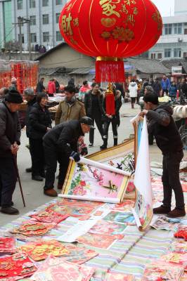 2月3日,竹溪一市民选购年画。春节临近,市民纷纷选购年画、春联、年俗饰品,迎接春节到来。