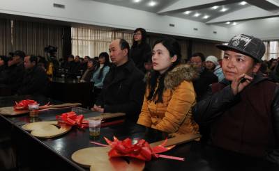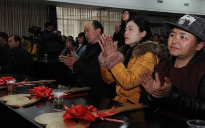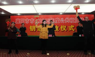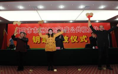 2月4日,湖北省襄阳市举行2015年公共租赁住房钥匙发放仪式,杨春兰、杨红敏、郭立新(从左到右)等2028户住房困难家庭在春节到来前领到新房钥匙。这已是襄阳市自2007年以来,连续9年在春节前向住房困难家庭发放公租房钥匙,也是历年来最多的一次。