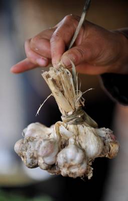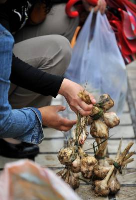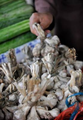 10日,宣恩县珠山镇莲花坝村一菜农在田间收割蔬菜。因为气候原因造成大蒜、莴笋等蔬菜减产已成不争的事实,而城郊菜农通过减少销售的中间环节而让蔬菜直接进入市场销售,这样既能保证菜农应得利益,也能有效维护蔬菜价格市场稳定。在该县城区一蔬菜市场,本地产蔬菜所占份额约占一半,而大蒜则更少——菜农直接出售的大蒜,其个头、外形也大不如前些年,”病秧秧”地摆在市场上显得很”可怜”。尽管如此,蒜农卖蒜基本是”一口价”而没给市民多少还价空间。(本报视界网宋文摄)