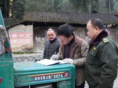2月3日,来凤县农机安全监理站执法人员在来大公路上对拖拉机交通安全进行专项整治。