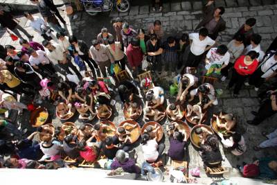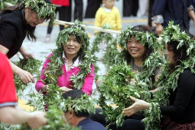 9日上午9时许,秭归县归州镇艾香笼罩,家家户户都在准备艾叶水,准备给小孩洗澡、为老人泡脚。独具特色的屈子街成为一片欢乐的海洋,家家户户的门前都挂起了艾叶。上演着当地端午民俗的盛宴。