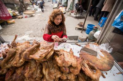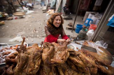 “土货”俏 农民笑 2月5日,竹山县宝丰镇农贸市场,方建英加工的土鸡熟食卖的特别好,她高兴的在摊点前数钱。农历腊月26日,“年味”渐渐浓了起来。农村的“土货”则成了城乡居民争相抢购的“香饽饽”。这几天,家住竹山县宝丰镇白沙河村的方建英心里就感到格外高兴,她家散养的120多只土鸡,就被从附近城里来的市民抢购一空,收入近6000多元。(视界网 章磊 摄)