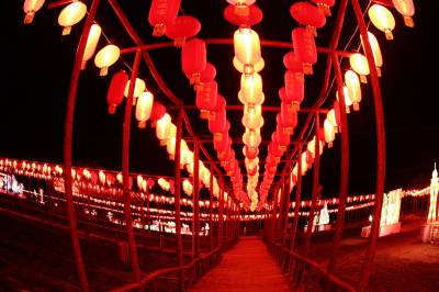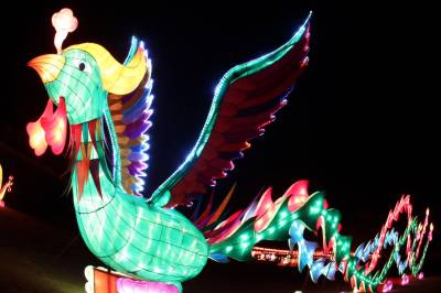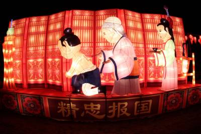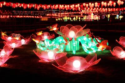 2月5日,夜幕降临,华灯初上,由民间花灯工匠精心打造的30多组造型各异的大型彩灯如绽放在夜空里的花朵,鲜艳靓丽,把十堰市茅塔千菊百卉园装扮的异常美丽。璀璨的灯光下,以“猴年大吉”、“中国梦”、“山城之恋”、“岳母刺字”、“熊出没” 为主题的大型系列灯组,融合了电子声光、动漫等现代元素,集思想性、知识性、趣味性、艺术性为一体,让茅塔千菊百卉园成为灯的海洋、光的世界,为即将到来的新春佳节营造了浓郁的喜庆氛围。