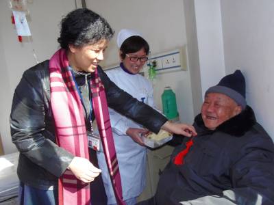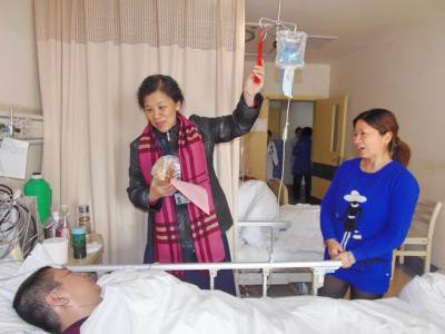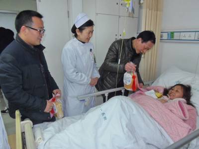 2月6日是羊年的腊月廿八,人们都沉浸在辞羊年迎猴年的欢庆之中。当日上午,湖北省武汉市红十字会医院(第十-医院)开展了为病友送上"三个-"(一串中国结、-封新春猴年慰问信、一包寓意生活身体步步高的皇冠品牌面包)的慰问活动,该院书记、院长分头带队与医护人员,同时走进了住院病房和儿科等室,代表全院700余名医护人员,为住院应诊病友和家属,送上了新春猴年的祝福,使他们有了宾至如家喜过猴年的感受。