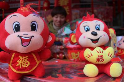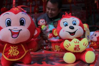 2016年2月6日,云梦县城乡居民在市场欣赏购买福猴、发财树,迎接猴年的到来。农历猴年到来了,象征吉祥、招财的福猴、发财树等深受居民的喜爱,人们纷纷购买发财树、福猴、鲜花回家,猴年节日氛围浓烈,人们高高兴兴为猴年到来许下美好的祝愿。