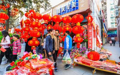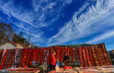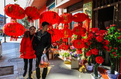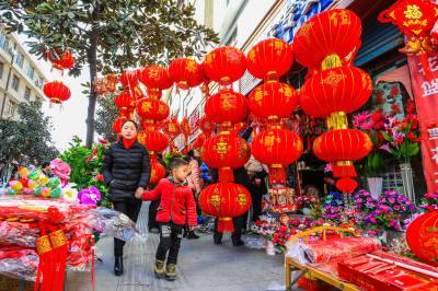 > 竹溪:大红灯笼高高挂 顾客乐在购年画