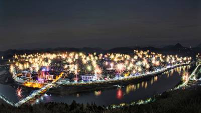 昨晚零时,竹山县南山公园山顶,前往观赏除夕烟花的游人,在寒风中终于等到烟花齐放的时刻。从23点45分到零时10分,千家万户用来迎接新年的烟花,在噼里啪啦的一片热闹声中,魔幻般竞相“怒放”。一时间,烟花涌动,美轮美奂,整个山城变成花的海洋