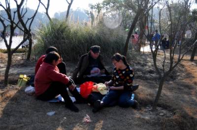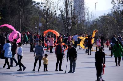 2月8日,市民在十堰四方山景区游览。当日是农历正月初一,十堰天气晴好,风和日丽,市民享受着大自然的美景并在景区游览。