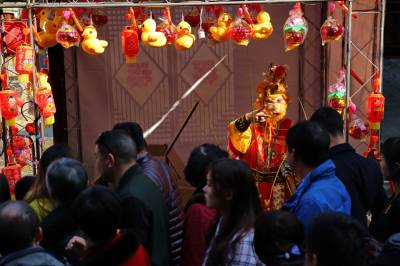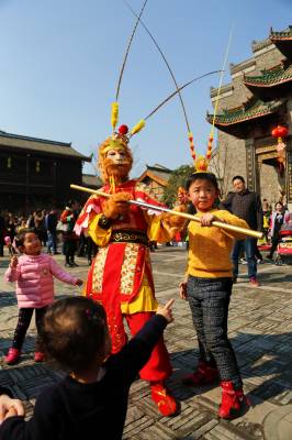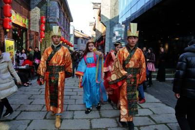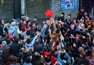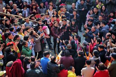 大年初一,数万市民来到汉口里,逛庙会、看表演、抢绣球,玩得不亦乐乎。 张垠 摄 武汉市江汉区园林局 430022