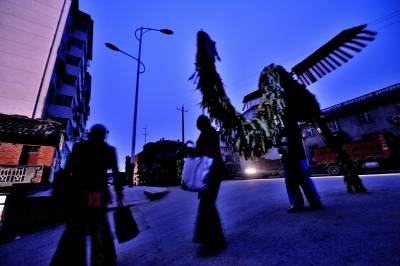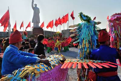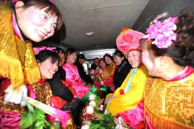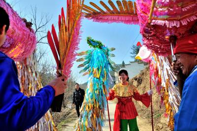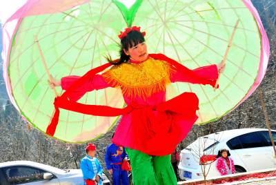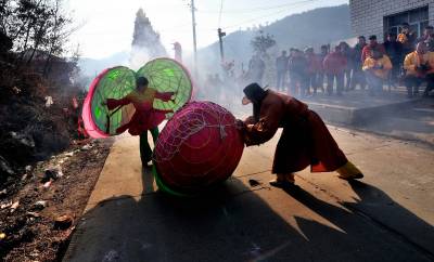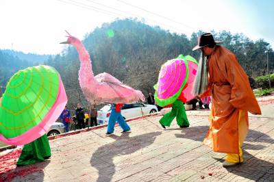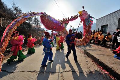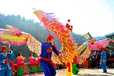 8日(农历大年初一),郧阳民间凤凰艺术团正在为柳陂镇梯子沟村村民表演花灯。 该区采取灵活多样的方式,引导退休人员、民间文艺爱好者等社会力量组建“草根”艺术团,并在文艺培训、表演设施等方面给予扶持。“草根”艺术团积极参与文化下乡活动,将农民朋友喜闻乐见的凤凰灯、采莲船、渔翁戏蚌等传统花灯节目送到村民家门口,成为了乡间地头里一道独特的风景线。(视界网 吴成林 摄)