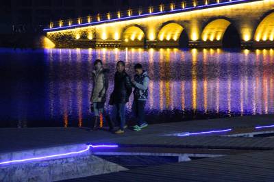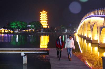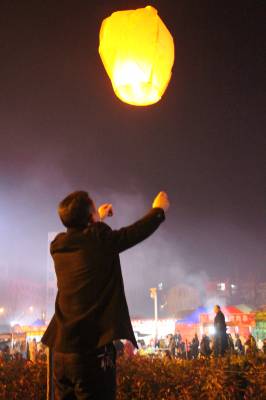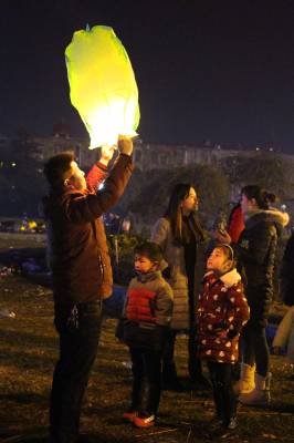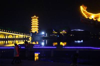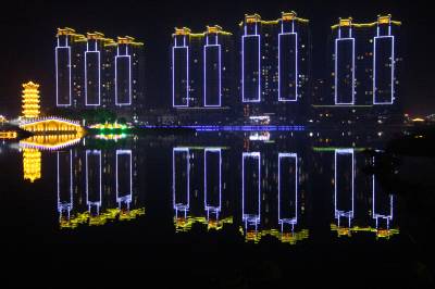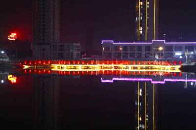 2016年2月8日,农历猴年新年正月初一,美丽的小城云梦新年之夜,夜色阑珊,灯火辉煌。城市广场人们放飞的许愿灯、街市靓丽霓虹灯、一字排开的亮闪闪的路灯、湖光水色的倒影灯、流动的车灯,小城云梦,流光溢彩,水乡云梦,湖光美景,美不胜收。本报视界网 陈保忠 摄