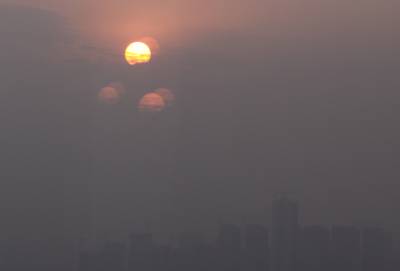 夕阳西下。乌云之上群日争辉!