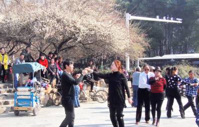新春猴年期间,湖北省武汉市阳光灿烂,春光明媚,气温达22度。2月8日(正月初一)下午14点40分,江汉区唐家墩小森林广场上,居住在附近的居民群众,在盛开的梅花树下晒太阳,享受猴年第-天的美好春光。在欢庆喜悦优雅的乐曲声中,翩翩起舞,共庆新春猴年好时光。