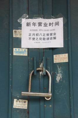 2016年2月10日,新春佳节的小城云梦车少、人稀、店关门,往日熙熙攘攘的街道、市场显得格外清净。当日,是农历猴年新年的第三天,人们还沉醉在喜庆的节日海洋中,忙着拜年,走亲访友,叙旧聊天,看望亲朋长辈,接待客人。从农历旧年腊月二十九下午开始,喧闹的城市、街道、市场一下子就宁静下来了,拥堵的道路上车少了,熙熙攘攘的市场人少了,众多的商店关门了,大型超市等依旧坚持节日营业。有的商店假日将持续到正月初四、初五,或者到初八开门迎客。春节大团圆,大团聚,大拜年,将持续到春节节日的完结,清净的城市将恢复往日的喧闹和繁忙。