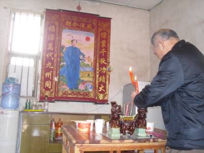 伟业千秋功绩大,福泽万代九州同。2016年2月7日是农历腊月的最后一天,也是人民群众团年的大好日子,75岁高龄的孝南区杨店镇退休老党员史幼桥在悬挂于家中堂屋正厅的毛泽东画像前,躬身焚香燃烛,向一代伟人致敬。 在当地,逢年过节,许多居民家中祖屋供奉的不是祖宗灵位,而是革命先驱的画像,“听党的话、矢志不移跟党走”的坚定信念牢牢扎根于群众心间。