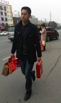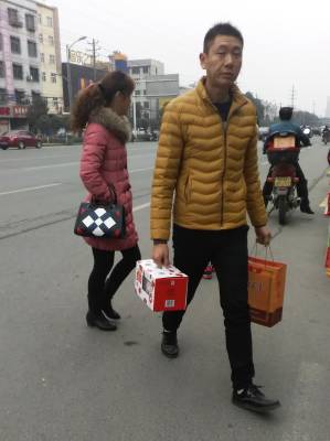 2016年2月11日,云梦城乡到处是拜年的人们。当日,正是农历猴年正月初四,是新年拜年的第四天。无论是农村还是城镇,随处可见手提礼品拜年人的身影,人们忙着走亲访友去拜年。在云梦城乡,拜年亡人为大,初一一大早首先到有亡人的家去拜年,正月初一还要为本家族宗亲长辈拜年;正月初二,到妈妈娘家,走“家家”拜年;初三女婿上门为岳父岳母拜年;初四到姑妈、姨妈家拜年等习俗。