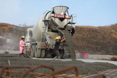 新春施工忙 正月初五(2月12日),工人在竹山县城至宝丰一级公路麻家渡镇营盘和大桥上浇注混凝土。春节期间,营盘和大桥施工人员加班加点,奋战在施工一线,确保工程快速高效推进。(视界网 章磊 摄)