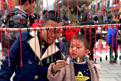 春节期间,女儿城游人如织,热闹非凡。州城市民和外地游客,纷纷来到这里游玩、购物、饮食,领略土家文化,体验土家年俗。