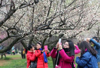 2月13日,农历正月初六。武汉东湖梅园梅花盛开,游人如织,春节最后一天假期即将结束,但欢度假日的游人依然游兴不减,漫步在芳香扑鼻,鲜花盛开的花海中。(视界网:黎金勇 摄)
