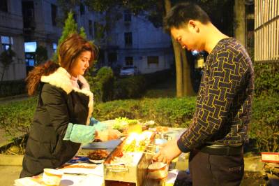 2016年2月14日,一对去年旧年结婚的小两口动手制作烧烤,同家人一起过上一个别样有趣而又温馨、浪漫、孝敬老人的情人节。当日晚,小两口一起自己动手,制作可口的烧烤让奶奶和父母以及其他家人一起吃烧烤,让父辈和奶奶同年轻人一起过上了一个浪漫、温馨的情人节。