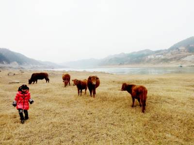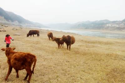 外孙女韩冰洁是河北石家庄梧桐小区舞蹈班学员。春节期间,到湖北省郧阳区五峰乡大石沟村姥姥家过年。在河边玩耍时,为一群牛即兴舞蹈,牛们停下吃草,驻足观看。 (视界网 周宗华摄)