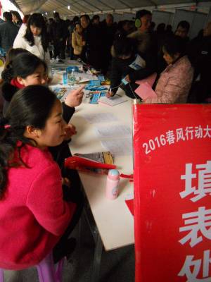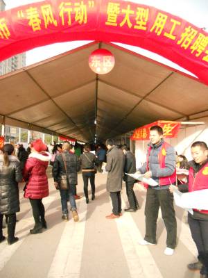 2月17日,汉川市2016年度“春风行动”专场招聘会在霍城广场启动。据介绍,此次“春风行动”由汉川市政府主办,市人社局等单位承办,主要为返乡务工人员以及需要转移就业的城乡男女青年提供就业创业服务,满足园区企业和新兴产业企业新年用工需求。在当天的招聘会中,100余家大型企业进场招聘,提供2000多个就业岗位,吸引1万多名求职者进场求职,现场签订就业协议3800人。