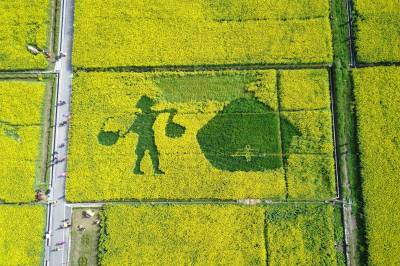 2019年4月2日,保康县歇马镇乡村的田园在远山、村落的衬映下如梦如幻。