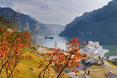 2025年11月30日,湖北省宜昌市,满载游客的全球最大纯电动游轮“长江三峡1”号航行在长江三峡的“...
