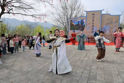 2026年3月28日,湖北省枣阳市太平镇民俗表演者走进张柏岗村百亩梨园为游客表演民俗节目。近日,枣阳...